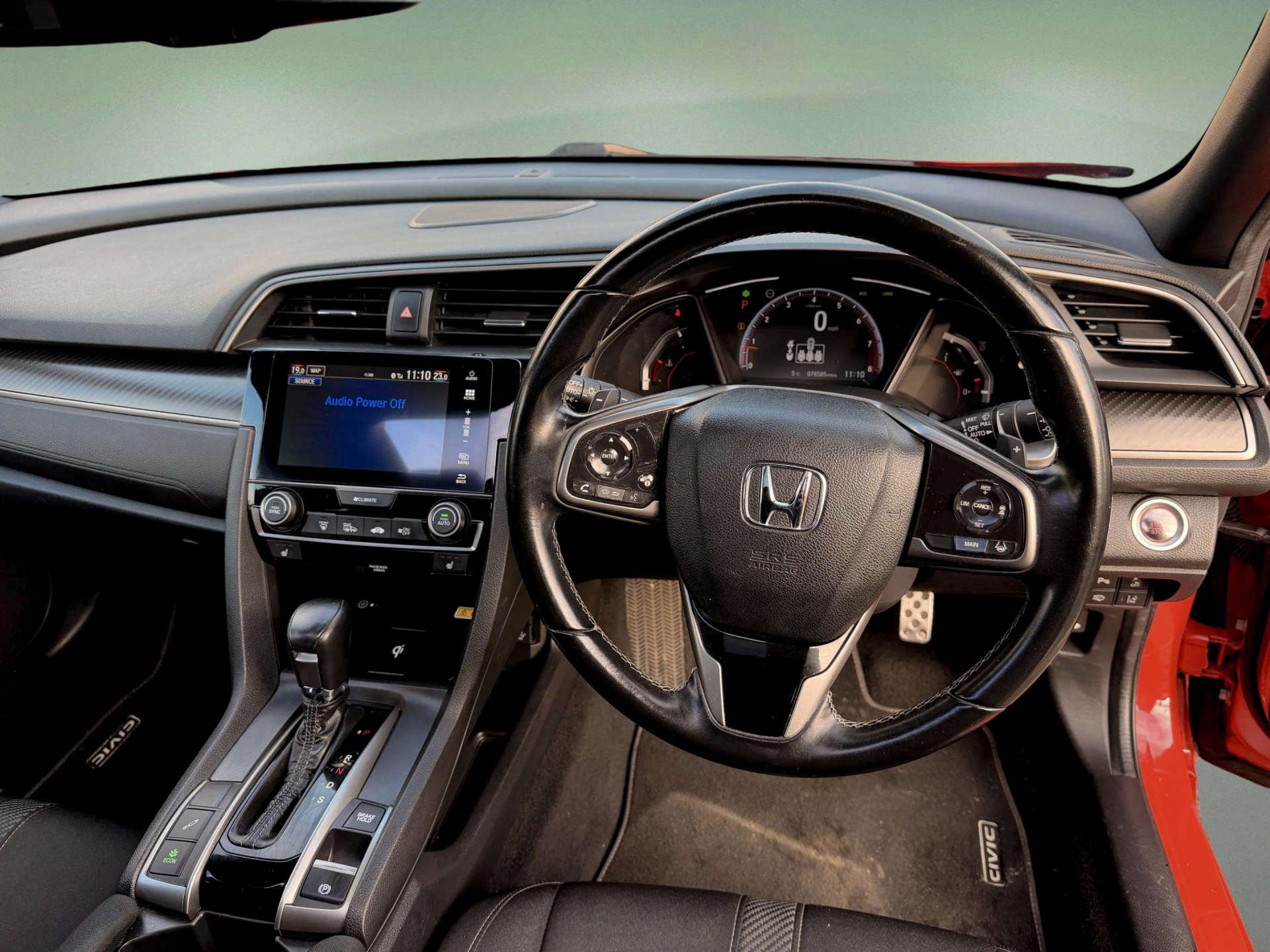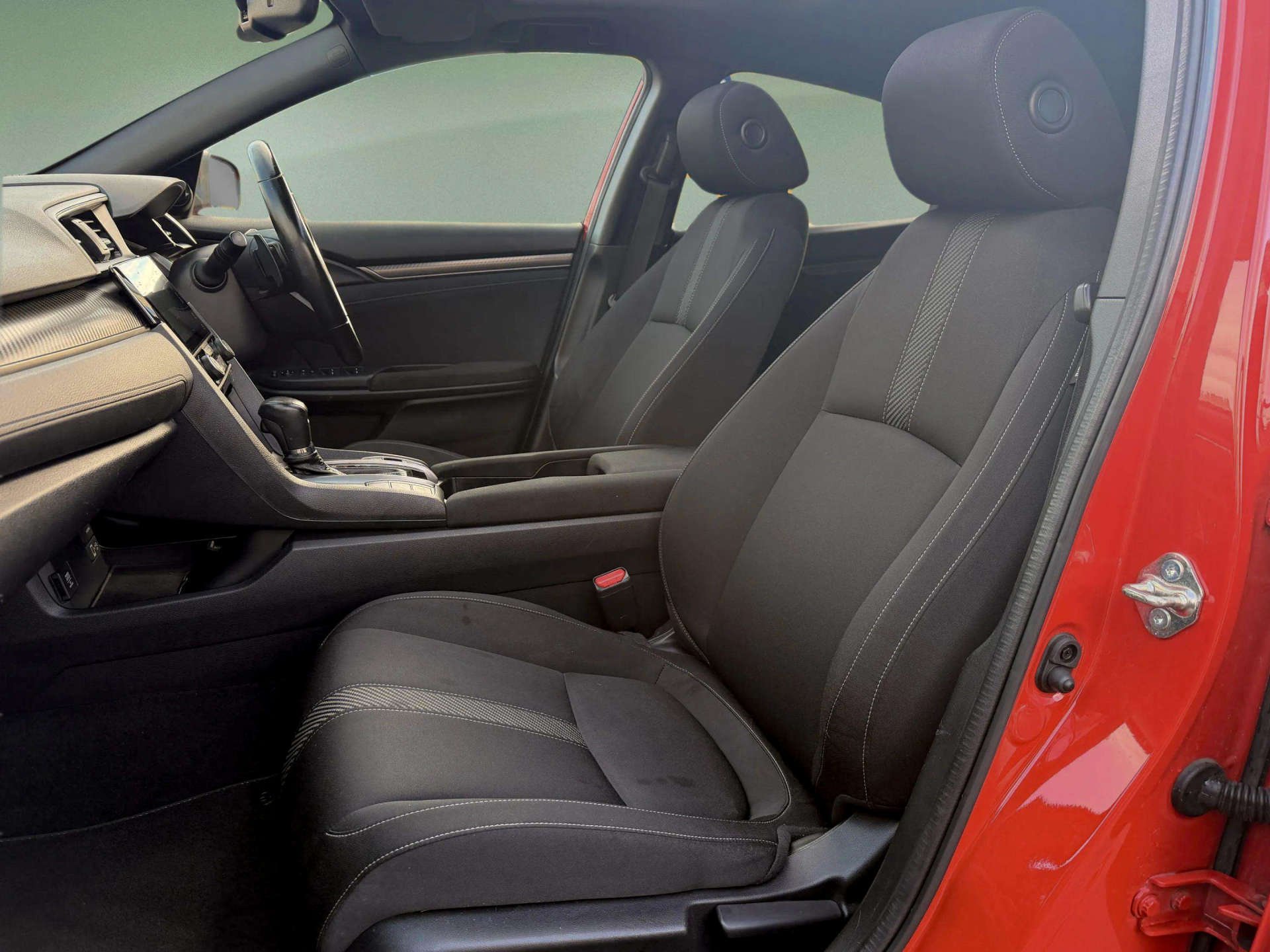 Clear Car Group Are Proud To Present A Stunning Example Of The 2019 (19) Honda Civic 1.5 VTEC Turbo GPF Sport Plus Hatchback 5Dr Petrol Euro 6 (S/S) (182 Ps) Edition, Finished In Red With a Rare Panoramic Glass Roof, Covered an Easy 78,000 Miles Accompanied By A Full Service History, Just Been Fully Serviced And Supplied With 12 Months MOT, Only 2 Previous Owners Fom New. Contrasting Sport Plus Styling, This Civic Combines Strong Performance, Massive Spec Accompanied With Hondas Known Reliability. It’s The Desirable 1.5 VTEC Turbo GPF Sport Plus With An Automatic Gearbox, Giving Brisk Performance With Around 8.4 Seconds 0–62 Mph And Combined Economy Of About 42.2 Mpg, While Being Euro 6 Compliant. High Sport Plus Spec Including: Panoramic Glass Roof With Tilt/Slide Function And Interior Blind, 17" Gloss Black Alloy Wheels,Body Kit, Dual Exhaust, Black Grille And Window Surrounds, Privacy Glass And Rear Spoiler, LED Headlights With High?Beam Assist+ LED Daytime Running Lights +LED Front Fog Lights, Front And Rear Parking Sensors And Reverse Camera Assist, Honda Connect 7" Touchscreen Infotainment With Navigation, DAB, Bluetooth, USB, Smartphone Integration And Steering?Wheel Audio Controls, Dual?Zone Climate Control, Auto?Dimming Rear?View Mirror, Electric Folding Heated Mirrors, Keyless Entry And Start, Electronic Parking Brake With Auto?Hold, Heated Front Seats, Sports Interior With Cloth Upholstery, Leather Steering Wheel And Gear Knob, Ambient Interior Lighting, Honda Sensing Safety Pack: Collision Mitigation Braking, Lane Keep Assist, Lane Departure Warning, Adaptive Cruise Control, Traffic Sign Recognition, Road Departure Mitigation, Tyre Deflation Warning, Multiple Airbags This Is A Well?Looked?After, High?Spec Automatic Civic That’s Ready To Drive Away Today!! -