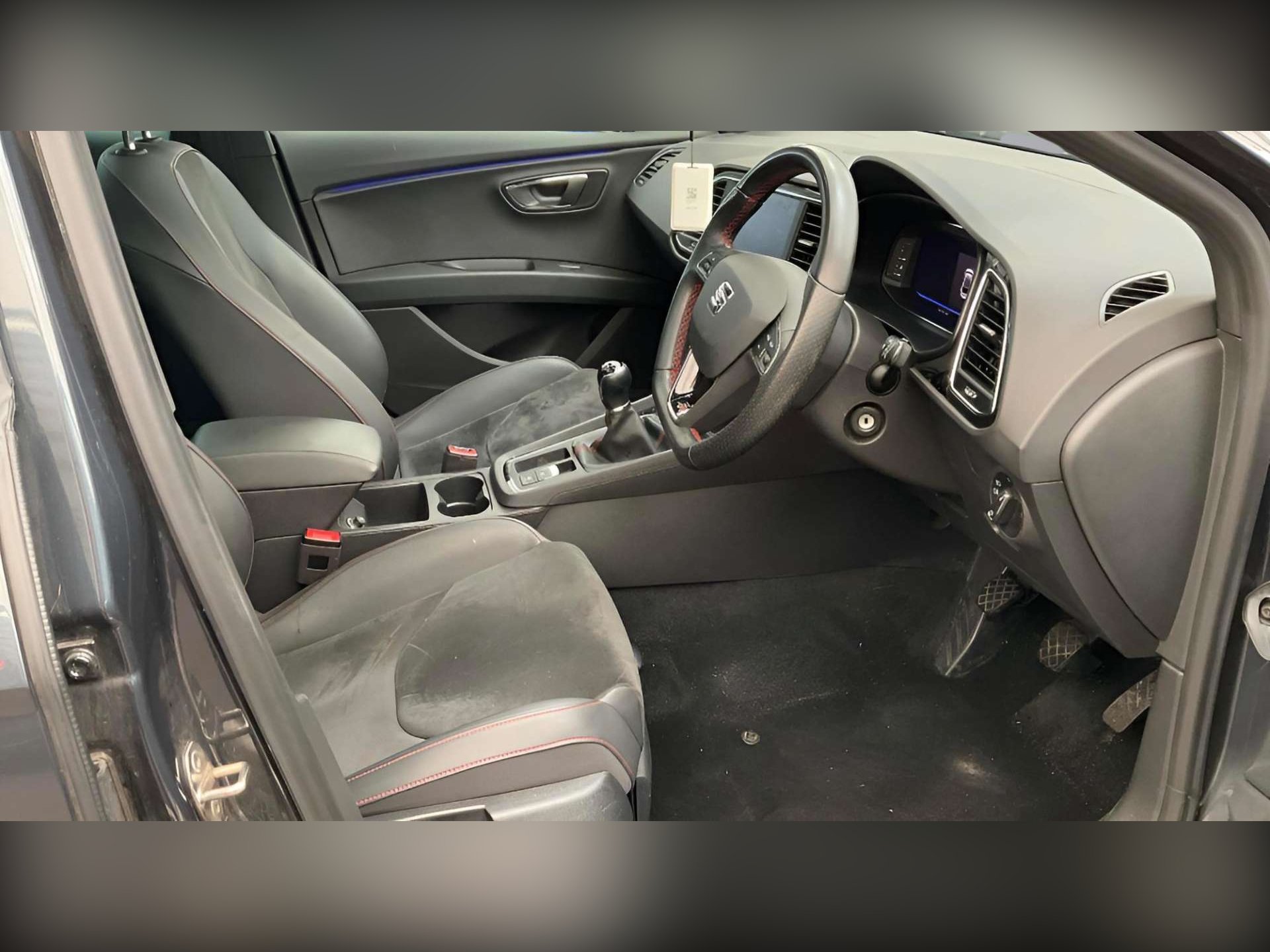 - Steering Wheel - Flat-Bottomed Perforated Leather with Red Stitching and FR Logo